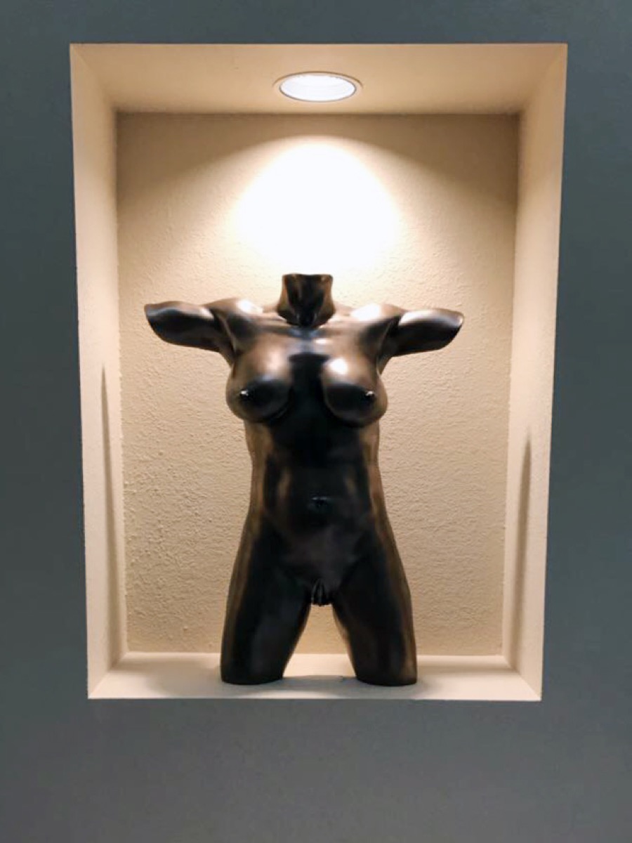 Description: Female long torso with half arms and explicit genitals